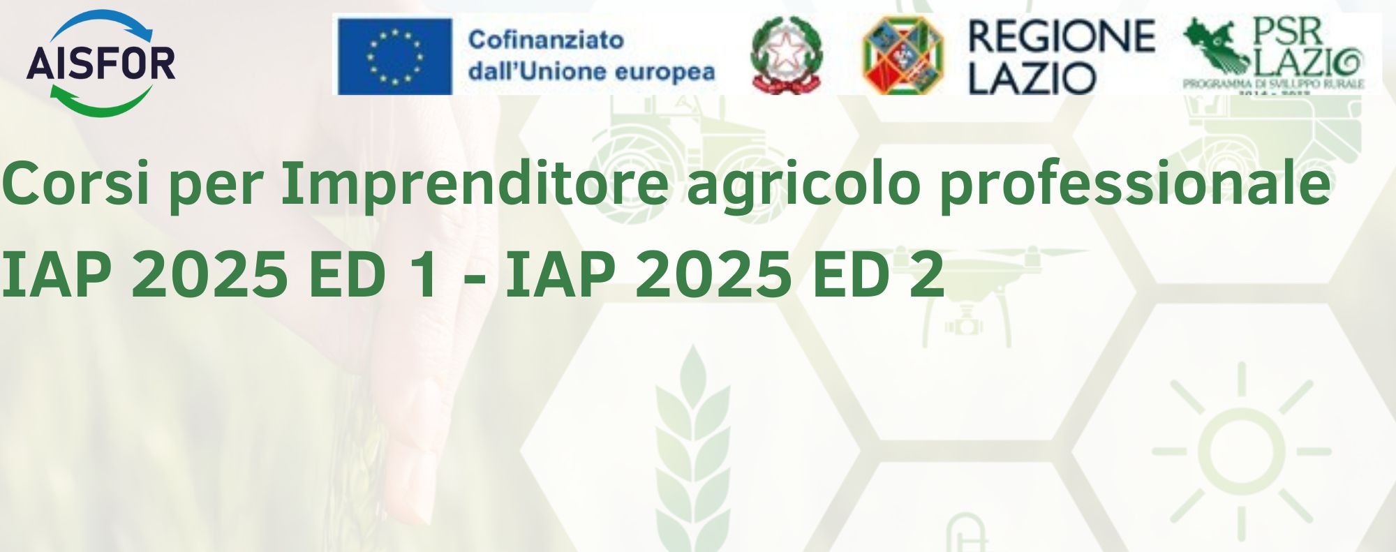 Il corso è gestito da Aisfor con una esperienza quindicennale nell'organizzazione di corsi per Imprenditore Agricolo Professionale nella Regione Lazio, avvalendosi di professionisti e docenti qualificati e apprezzati. Il programma del corso è consultabile a questo link