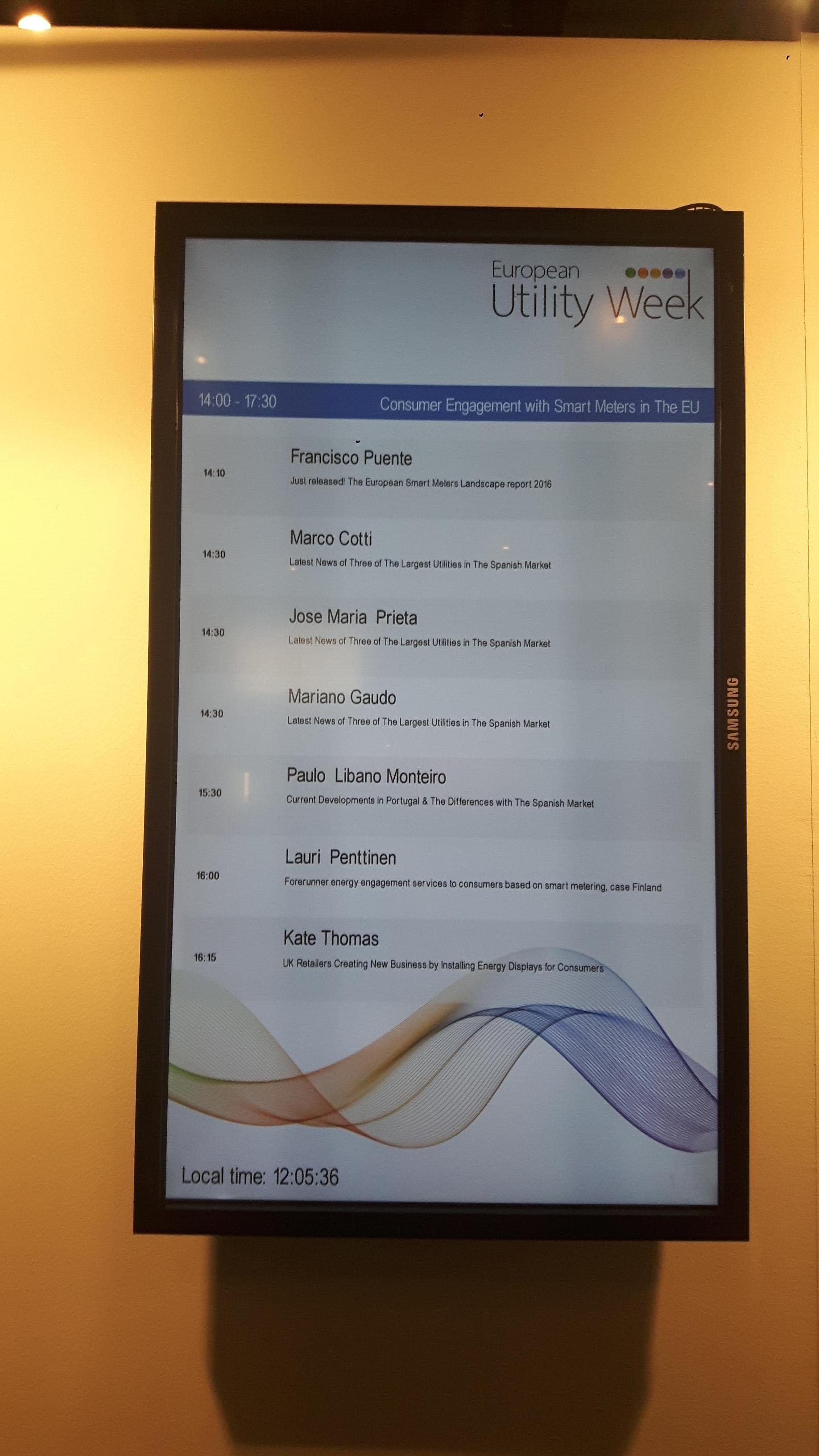 “In 2016, the massive deployment of smart metering in Europe, with an accumulated number of 80 million smart meters installed (of a total of 300 million residential customers), has been ratified, constituting a major breakthrough in innovation for our society.” This is the main conclusions of the Smart Metering Landscape Report 2016, according to the USmartConsumer project coordinator Mr. Francisco Puente. “And if you also observe the regulations published in the different Member States, together with the number of meters installed and services to consumers (residential customers), it can be concluded that the EU countries definitely evolve at different speeds”, Mr Puente concluded at the EUW2016.